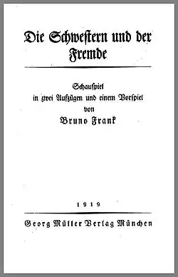 Die Schwestern und der Fremde. Schauspiel in zwei Aufzügen und einem Vorspiel ist das dritte Bühnenstück von Bruno Frank. Die Uraufführung fand unter der Regie von Otto Falckenberg während des Ersten Weltkriegs am 17. Dezember 1917 in den Münchner Kammerspielen statt. Die Berliner Erstaufführung fand am 30. April 1918 im Theater in der Königgrätzer Straße statt. Die Druckausgabe des Stücks erschien 1919 im Georg Müller Verlag in München.[1]
