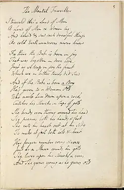 - ↑ William Blake: The Mental Traveller (annotated) Auf: genius.com, abgerufen am 10. Oktober 2019.