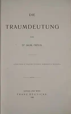 In Die Traumdeutung stellte der österreichische Arzt Sigmund Freud eine neuartige Traumtheorie vor, die den Zusammenhang zwischen Träumen und persönlicher Lebensgeschichte in den Vordergrund rückt.[1] Die Erstausgabe erschien am 4. November 1899 und wurde auf das Jahr 1900 vordatiert.[2] Die Traumdeutung gehört zu den meistgelesenen und einflussreichsten Büchern des 20. Jahrhunderts.[3]