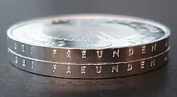 Der Schriftzug Die Welt zu Gast bei Freunden ist die Randschrift der deutschen silbernen WM-Gedenkmünzen.