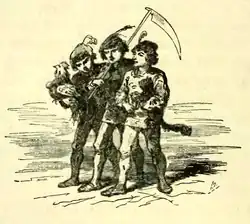 Ein Vater vererbt seinen drei Söhnen einen Hahn, eine Sense und eine Katze. Das scheine zwar wenig wert, aber sie müssten sich nur ein Land suchen, wo dergleichen noch unbekannt ist. Jeder der drei hat erst keinen Erfolg, bis er auf eine Insel kommt. Auf der ersten wissen die Leute nachts die Zeit nicht, die zweiten versuchen, ihr Korn mit Kanonen zu ernten, die sie neben den Feldern aufstellen, und die dritten leiden unter einer Mäuseplage. Jeder Bruder kehrt mit einem goldbeladenen Esel, Pferd oder Maulesel heim.