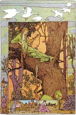 - ↑ Ernst Heinrich Meier: Von drei Schwänen. In: Deutsche Volksmärchen aus Schwaben. C.P. Scheitlin’s Verlagshandlung, Stuttgart 1852, 38–42; Digitalisat. zeno.org.