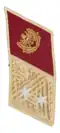 An Stelle des Korpsabzeichens ist auf den Distinktionen der die Ärzteschaft symbolisierende Äskulapstab in einer ellipsenförmigen Einfassung angebracht. Die Stellung des Trägers wird durch ein Akanthusornament dargestellt.