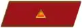 fünfzackiger kleiner Stern (Goldfadenstickerei) mit waffenfarbiger Paspelierung, darunter 32 mm breiter Stoffwinkel (Goldfarben) mit 3 mm breiter waffenfarbiger Kante am unteren Rand |