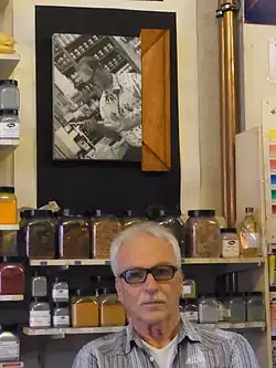 Eine Doppelglastür führte hinter der Verkaufstheke zu einem kleinen schattigen Innenhof, der gemeinsam von seinen Kunden und der Belegschaft einer angrenzenden Restaurierungswerkstätte genutzt wurde. Moderne Kunst traf hier auf historische Techniken, und die Materialauswahl für so manches Meisterwerk erfolgte hier, direkt neben einem kleinen, wenn auch nur gelegentlich tröpfelnden Brunnen.