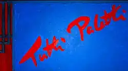Als das Schild 1990 erste Abwitterungen aufwies, änderte ein Kirchenmaler in Absprache mit Frowein-Lyasso die Farbigkeit, der freie Schriftzug blieb aber unverändert erhalten. Fortan leuchtete auf dem metallenen Ladenschild ein karminroter Schriftzug auf ultramarinem Grund. Diese Farbkombination fungierte bis zur Schließung von Tutti Paletti am 1. Mai 2013 als Markenzeichen des Künstlerfachgeschäftes.