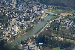 Historischer Stadtkern mit alter (vorne) und neuer Lahnbrücke sowie Schloss (links oben)