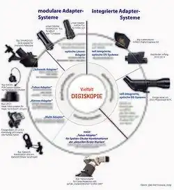 Das Zusammentreffen zweier Entwicklungen in den 1990er Jahren hat dieses Aufnahmeverfahren ermöglicht. Auf der einen Seite war es die optische Verbesserung der Fernrohre, insbesondere die größeren Austrittspupillen der Okulare, auf der anderen Seite kam es zu einer Digitalisierung und Miniaturisierung der Aufnahmegeräte, insbesondere in der Kompaktkameraklasse. Um die Jahrtausendwende waren die beiden Entwicklungen derart vorangeschritten, dass sich mit dem Anschluss von Kompaktkameras an das Spektiv langbrennweitige Fotos guter Qualität bei niedrigem Ausrüstungspreis erstellen ließen. Damit war der Bebilderung der Naturbeobachtung Tür und Tor geöffnet. Heute bieten alle großen Spektivhersteller entsprechende Technik an, darunter auch die beiden Marktführer Carl Zeiss Sports Optics und Swarovski Optik. Das Technikangebot reicht von speziellen Okularen über Adaptersysteme bis hin zu modularen bzw. integrierten Systemen (siehe Grafik).