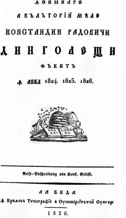 - Însemnare a călătoriei mele, Constantin Radovici din Golești, făcută în anul 1824, 1825, 1826, Druck der Universität Budapest, Budapest 1826.