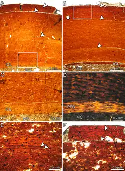 - ↑ Thomas G. Kaye, Gary Gaugler, Zbigniew Sawlowicz: Dinosaurian Soft Tissues Interpreted as Bacterial Biofilms. In: PLoS ONE. Bd. 3, Nr. 7, 2008, S. e2808, doi:10.1371/journal.pone.0002808.