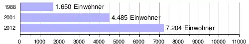 Im Hauptort lebten bei der Volkszählung 2012 7.204 Einwohner in 1.485 Haushalten,[2] bei der Volkszählung 2001 4.485 in 971 Haushalten[10] und bei der Volkszählung 1988 1.650 in 408 Haushalten.[11]