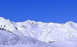 Blick aus dem Tal auf das Skigebiet Parsenn