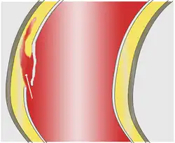 Antegrade Dissektionen können sich durch den arteriellen Puls ausdehnen und zum Verschluss des Gefäßes führen.[4]