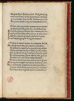 - Pseudo-Cato (vulgo Disticha Catonis). Gerard Leeu, Antwerpen 1. III. 1485 (Digitalisat)