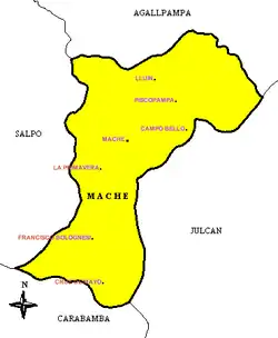 Der Distrikt Mache grenzt im Westen an den Distrikt Salpo, im Norden an den Distrikt Agallpampa, im Osten an den Distrikt Julcán (Provinz Julcán) sowie im Süden an den Distrikt Carabamba (ebenfalls in der Provinz Julcán).