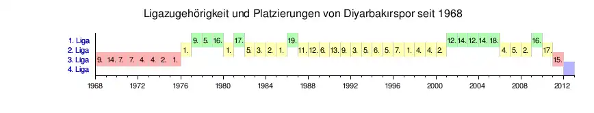 Diyarbakırspor ist ein 1968 gegründeter Fußballverein aus der südosttürkischen Stadt Diyarbakır. Die Spiele werden im 33.000 Zuschauer fassenden Diyarbakır Stadyumu ausgetragen. Der Verein spielte in den 1970er, 1980er und 2000er Jahren insgesamt elf Spielzeiten in der Süper Lig. In der Ewigen Tabelle der Süper Lig liegt der Verein auf dem 35. Platz.[1] Die größten Erfolge der Vereinsgeschichte sind der 5. Tabellenplatz während der Süper-Lig-Saison 1978/79 und das Erreichen des Halbfinales im Türkischen Fußballpokal in der Pokalsaison 1981/82.