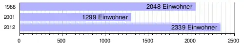 Im Hauptort lebten bei der Volkszählung 2012 2339 Einwohner in 299 Haushalten,[1] bei der Volkszählung 2001 1299 in 225 Haushalten[7] und bei der Volkszählung 1988 2048 in 368 Haushalten.[8]