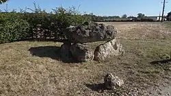 Der narbige Dolmen aus Puddingstein besitzt einen etwa 3,0 × 2,0 m großen ovalen Deckstein, der auf drei Tragsteinen liegt, einen weiteren Seitenstein besitzt und nach Süden offen ist, wo möglicherweise Steine fehlen. Der Zugang fehlt und lag wahrscheinlich im Osten.