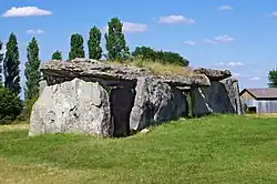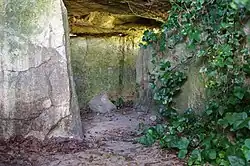 - ↑ Der Dolmen angevin ist eine Allée couverte vom Typ Loire, mit (eingezogenem) Trilithenportal als Eingang