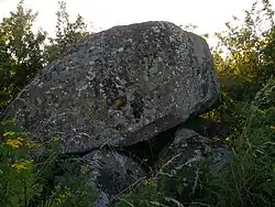 - ↑ Langdysse ist die in Dänemark gebräuchliche Bezeichnung für Dolmen, die in einem Hünenbett liegen. Dolmen, die in einem Rundhügel liegen, heißen Runddolmen