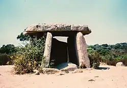 Die Megalithanlage, die wie eine Steinkisten aussieht, die man aus dem Untergrund geholt und auf die Oberfläche gestellt hat, besteht aus sechs vertikalen Granitplatten und einer über drei Tonnen schweren Deckenplatte (3,4 × 2,9 m breit). Die Kammer ist 2,6 m lang, 1,6 m breit und 1,8 m hoch.