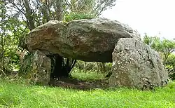 Der 1878 untersuchte neolithische Dolmen besteht aus drei Tragsteinen die eine etwa 3,0 × 1,0 m große Deckenplatte stützen.