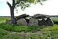 - ↑ Der Dolmen angevin, ist eine Allée couverte vom Typ Loire, mit (eingezogenem) Trilithenportal als Zugang.