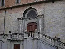 Die über Jahrhunderte entstandene Kirche zeigt die verschiedenen Stile dieser Epochen. An der Außenseite ist die Eingangsfassade aus dem 17. Jahrhundert unvollendet, während die Nordseite durch ein reiches gotisches Portal mit Basreliefs aus der ersten Hälfte des 14. Jahrhunderts dekoriert ist, davor steigt eine Treppe aus dem 18. Jahrhundert von Venanzio Righi herauf. Die Kirche wird von einem runden, romanischen Glockenturm im Ravenna-Stil (13. Jahrhundert) flankiert, der 43,5 Meter hoch ragt.