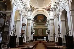 Das Kirchenschiff ist mit einem Tonnengewölbe mit Lünetten bedeckt und wird durch rechteckige Fenster beleuchtet. Die fünfseitige Apsis besitzt ein halbkugelförmiges Dach, dieses zeigt Christus als Pantokrator zwischen Heiligen, gemalt 1937 von Biagio Biagetti. An der Kreuzung mit dem Querschiff erhebt sich eine Vierungskuppel, deren Pendentifs von Placido Lazzarini mit den Evangelisten ausgemalt wurden. Der barocke Hochaltar aus polychromem Marmor mit der Madonna di Loreto wurde 1741 von Bischof Fonseca geweiht. Das Chorgestühl wurde aus Nussbaum geschnitzt. In den niedrigen Querschiffen wurde in der zweiten Hälfte des 18. Jahrhunderts seitlich Marmoraltäre errichtet. Auf der linken Seite des Kirchenschiffs befindet sich die Barockkanzel. Sechs Seitenkapellen wurden zum Teil von den Adligen der Stadt erbaut und mit Dekorationen, Stuck und Gemälden ausgestattet. In der ersten Kapelle auf der linken Seite befindet sich das wertvolle Taufbecken aus rotem Verona-Marmor aus dem 16. Jahrhundert, das von Marmorlöwen aus dem 15. Jahrhundert gestützt wird. Die Orgel wurde 1960 von Francesco Zanin e Figli gebaut.