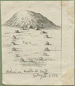 Das Grab wurde nicht von Archäologen untersucht, aber jemand hat eine große Grube in der Mitte des Hügels gegraben. Diese Störung wurde behoben, als der Grabhügel in den Jahren um 1930 restauriert wurde. Nach Berichten aus den 1870er Jahren soll es östlich des Grabhügels eine andere Grabstätte gegeben haben. Davon sind heute keine Spuren mehr vorhanden.