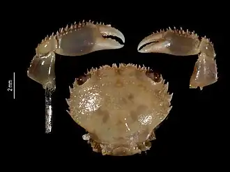 - ↑ a b c d Peter J. F. Davie, Danièle Guinot, Peter K. L. Ng: Systematics and Classification of the Brachyura. In: Peter Castro, Peter J. F. Davie, Danièle Guinot, Frederick R. Schram, J. Carel von Vaupel Klein (Hrsg.): The Crustacea. Band 2. Koninklijke Brill NV, Leiden 2015, S. 1110.