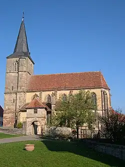 Die Evangelische Kirche des Ortes stammt als ehemalige Wehrkirche aus dem 14. Jahrhundert und steht als Monument historique unter Denkmalschutz.