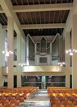 Im Jahr 1961 erbaute die Orgelbaufirma Walcker aus Ludwigsburg die Hauptorgel mit damals 38 klingenden Registern. In Frankfurt war es seinerzeit eine der ersten Orgeln mit einer „Spanischen Trompete“ (horizontales Zungenregister).