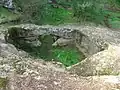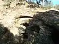 Der viereckige Innenhof der Domus de Janas (deutsch Haus der Feen), auch als Necropoli ipogeica bezeichnet, war ursprünglich die Hauptkammer, deren Decke einstürzte. Der Zugang erfolgt über einen Granitbogen und von der Kammer aus zu zwei Nebenkammern, von denen eine viereckig ist und über eine architektonisch gestaltete Fassade mit einer Tür mit Rahmen zugänglich ist. Die andere ist von unregelmäßiger Form und weist einen deformierten Zugang und einen Riss in der Decke auf.