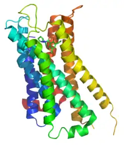 Dopaminrezeptoren sind Proteine, die durch ihr zentrales Strukturmotiv, nämlich sieben die Zellmembran durchspannende Helices, geprägt sind. Diese postulierte Struktur konnte für den D3-Rezeptor mit Hilfe der Kristallstrukturanalyse bestätigt werden.[4]