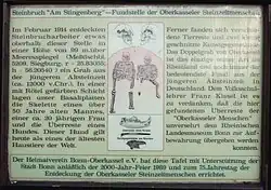 - Der Oberkasseler Steinzeit-Mensch, Seite der Familie Uhrmacher (Steinbruchbesitzer) über das Grab ( vom 8. April 2016 im Internet Archive)