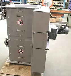 Die Antriebsform über eine Kurvenscheibe ist überlastsicher ausgeführt, so dass im Störfall (große Klumpen, die eingeklemmt werden) keine Selbstzerstörung der Doppelpendelklappe erfolgt. Das System wirkt sowohl im Schließ- als auch im Öffnungsvorgang. Zwei große Wartungsöffnungen erleichtern den Service und ermöglichen das Wechseln der Klappenteller im eingebauten Zustand.