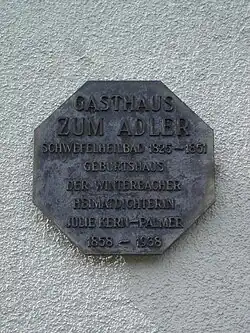 Seit 1984 ist im zweiten Obergeschoss ein Zimmer für die Winterbacher Heimatdichterin Julie Kern (1858–1938) eingerichtet. Unter ihrem Pseudonym Julie Palmer veröffentlichte sie Erzählungen, Märchen und Theaterstücke im schwäbischen Dialekt. Die Einrichtung der Gedenkstätte wurde vom Deutschen Literaturarchiv in Marbach unterstützt. An die Autorin erinnern darüber hinaus eine Gedenktafel an ihrem Geburtshaus – dem ehemaligen „Gasthaus zum Adler“ – sowie ihr Grab auf dem Alten Friedhof.
