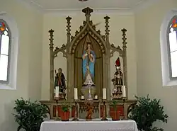 Die Kapelle besitzt ein Steildach und einen dreiseitig geschlossene Chor. Der Giebelreiter ist mit einem Spitzhelm ausgestattet. Die (Innen-)Ausstattung ist neugotisch. Der Hauptaltar ist der Mutter Gottes geweiht. Oberhalb der Eingangstür ist die Figur eines Prager Jesuleins angebracht.