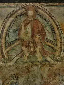 Das 1471 entstandene Fresko beim südlichen Eingang stammt von einem unbekannten Künstler. Es stellt das jüngste Gericht dar. In der Mitte thront Christus als Weltenrichter auf dem Regenbogen, flankiert von Maria, Johannes dem Täufer und zwölf Aposteln, die alle fürbittend die Hände erheben. Das Paradies ist nicht mehr erkennbar. Links ist die Auferstehung der Toten zu sehen, rechts die fantasievoll dargestellte Hölle, ganz rechts der Limbus für die ungetauft gestorbenen Kinder. In der oberen rechten Ecke ist ein Priester beim Feiern einer Seelenmesse zu sehen, neben ihm ein Engel, der zwei offensichtlich dem Fegfeuer entrissene Seelen emporzieht. Das Fegfeuer selbst ist nicht mehr erkennbar.