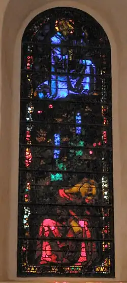 1937 erhielt die Kirche für den Chor (Architektur)|Chor drei neue Glasfenster von Augusto Giacometti. Sie haben als biblisches Thema die „Nacht von Getsemani“, wo Petrus (violett, links), Jakobus (rot, Mitte) und Johannes (grün, rechts) müde werden und einschlafen während Jesus (blau) wacht und betet (Mitte).