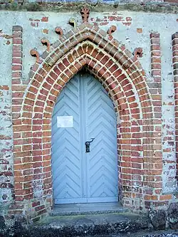 Der Kirchturm hat ein gewaltiges Untergeschoss aus Feldstein. Das niedrigste Gebäudeteil ist der zuerst errichtete Chor. An seiner Giebelseite befindet sich ein spitzbogiges großes Fenster, das allerdings erst 1845 in der heutigen Form eingefügt wurde. Auch die Fenster des Kirchenschiffes sind spitzbogig ausgeführt.