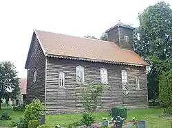 Die Kirche hat einen rechteckigen Grundriss mit einem 1/3 vorgebauten Turm, einen eingezogenen rechteckigen Chor und ein Satteldach mit Biberschwanzdachziegeln. Das Rosettenfenster im Chor wurde 2008 nach originalen Vorlagen gefertigt, an den Seiten befinden sich zwei Fenster mit spitzem Abschluss. Im Chor sind mit blau bemalten Balken Teile der ursprünglichen Innenbemalung zu erkennen. Das Kirchenschiff ist mit einer flachen Holzbalkendecke versehen. Der Turm ist quadratisch. Er wird durch einen Pyramidenhelm mit Kugel und Kreuz abgeschlossen.