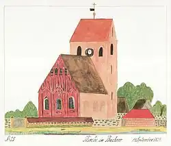 - ↑ Bei einer vierteiligen Apsiskirche mit Westbau entfallen allein auf den Turm 45 Prozent der Feldsteinquader, das heißt, mit einem Westbau verdoppeln sich nahezu die Baukosten.
