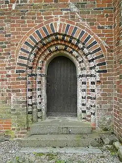 Auf der Nordseite des Chors und des Turmes sind abgetreppte Portale mit eingelegten Rundwülsten angeordnet; das erstere ist mit stumpfem Spitzbogen, das letztere mit Rundbogen ausgeführt. Beide Portale sind mit glasierten Formsteinen geschmückt. Die Raumteile der Kirche sind mit kuppelartigen Kreuzgratgewölben geschlossen. Der Triumphbogen ist ebenfalls mit abgestumpftem Spitzbogen versehen. Insgesamt ist die Kirche der Romanik zuzurechnen, obwohl sie mit ihren Portalen Elemente der Backsteingotik enthält.