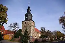 Die Kirche ist ein Saalbau aus Feldstein mit einem Westturm. Der Turm der Kirche hat keine Verbindung zur Kirche, auf der Südseite befindet sich ein Portal zum Turm. Im Oberteil des Turmes ist das Mauerwerk unregelmäßig, so dass eine Erhöhung des Turms im späten Mittelalter vermutet wird. Der Aufsatz und die geschweifte Haube mit Laterne wurden von 1714 bis 1716 hinzugefügt.