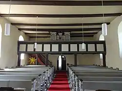 Ein schlichtes Retabel zeigt in vier Feldern aufgemalte Bibelsprüche und ist mit barockisierenden Ornamenten versehen. Die schlichte Holzkanzel stammt aus dem Jahr 1798. Ein Grabstein erinnert an Pastor Chr. L. Friedrich Raetzmann († 1837). Die Orgel auf der Westempore mit fünfteiligem Prospekt im Rundbogenstil ist ein Werk aus dem Jahr 1855, das in den 1970er Jahren erneuert wurde.[1]