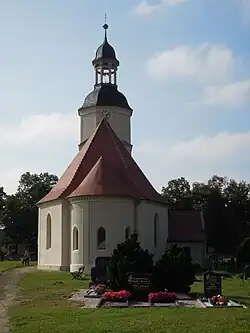 Die Kirche wird von einem unverändert betriebenen Friedhof umgeben, an dessen westlichem Eingang am rechten Torpfosten eine Elbhochwassermarke von 1830 angebracht ist.[4]