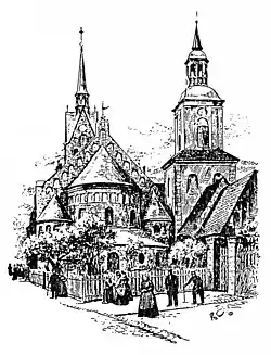 Nach der Vollendung und Einweihung der neuen (zweiten) Kirche 1890 wurde das erste Gebäude erst 1891 abgetragen. So waren beide Bauten ein Jahr lang dicht nebeneinander zu bewundern und dienten Malern und Fotografen als interessantes Motiv. Der hochbarocke Kanzelaltar der früheren Kirche ging 1890 als Geschenk der Gemeinde nach Petershagen, zur Ausstattung der dortigen Dorfkirche.[4] Die Orgel kam in das benachbarte Eggersdorf.[5]