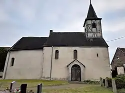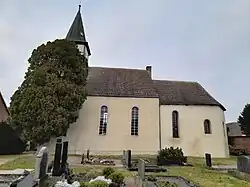 Die kleine verputzte, im Kern romanische Dorfkirche, ein Saalbau, besitzt einen dreiseitigen eingezogenen Chor, vermutlich aus spätgotischer Zeit. Der ursprünglich turmlosen Kirche wurde 1883 ein Westturm mit Fachwerkgeschoss und Spitzhelm aufgesetzt, der im Jahre 1984 neu eingedeckt wurde. Die Turmuhr an der Ostseite des Turms wurde 1884, ein Jahr nach dem Turmbau, eingebaut.